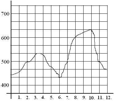 Egy Dráva menti községben folyamatosan mérték egy év 12 hónapjában a folyó vízszintjét. Ennek eredményét szemlélteti az alábbi grafikon.