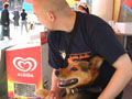 Arra jött egy középkorú hölgy, megsimogatta Bertát, adott neki néhány csirkecsontot, majd mindkét felet a harccselekmények beszüntetésére szólította fel. A nyanya azonban továbbra is rendíthetetlenül szorongatta újdonsült fegyverét. Már csak ebben bízott, mivel az alma és a paradicsom nem bizonyultak alkalmasnak a gyorsan mozgó célpont megsemmisítésére. A feszült hadihelyzetre való tekintettel elutasítottuk a tűzszüneti felszólítást.